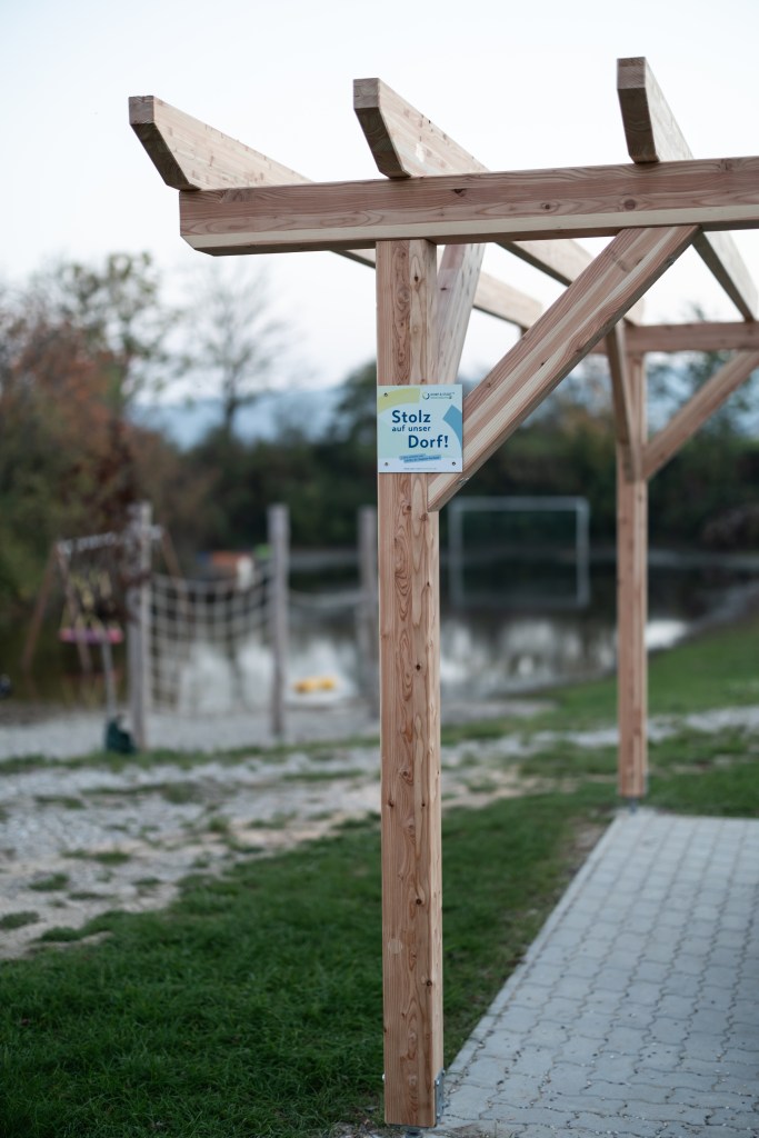Die Pergola ist nicht nur ein Schattenplatz, sondern auch ein Symbol für das Zusammentreffen und das Miteinander der Dorfbewohner*innen.